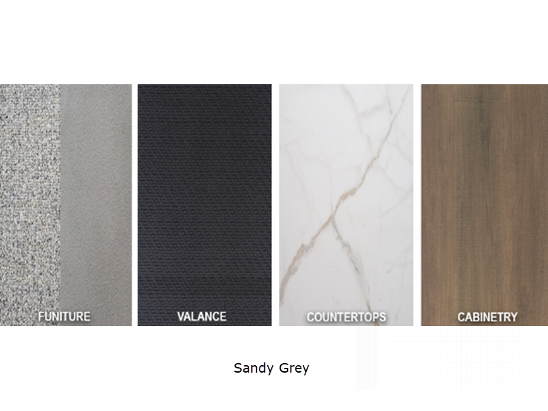 Sleeps 4 Length 29 ft 11 in Ext Width 8 ft Ext Height 13 ft Int Height 8 ft 4 in Interior Color Sandy Grey Hitch Weight 875 lbs GVWR 8850 lbs Dry Weight 5610 lbs Cargo Capacity 3240 lbs Fresh Water Capacity 84 gals Grey Water Capacity 40 gals Black Water Capacity 40 gals Tire Size ST225/75R15'D' Furnace BTU 25000 btu Refrigerator Type 12V Refrigerator Size 8 cu ft Cooktop Burners 3 Number of Awnings 1 Garage Size 14 ft LP Tank Capacity 30 lbs Water Heater Capacity 6 gal Water Heater Type Gas/Electric AC BTU 13500 btu Awning Info 18' Power with LED Lights Axle Count 2 Number of LP Tanks 2 Shower Type Radius Similar Floorplans